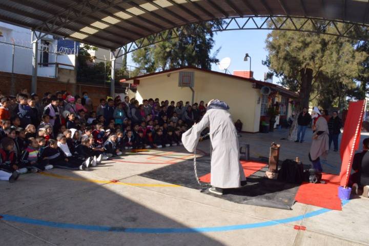 La Escuela Primaria Himno Nacional de la ciudad Morelia, recibió la puesta en escena "Cuento de Nav...
