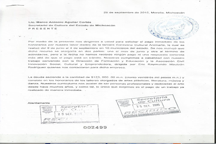 A los medios de comunicación Al Secretario de Cultura de Michoacán A los habitantes del estado ...