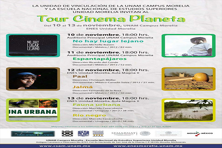 Del lunes 10 al jueves 13 de noviembre vuelve a la UNAM Campus Morelia, el Tour Cinema Planeta, el F...