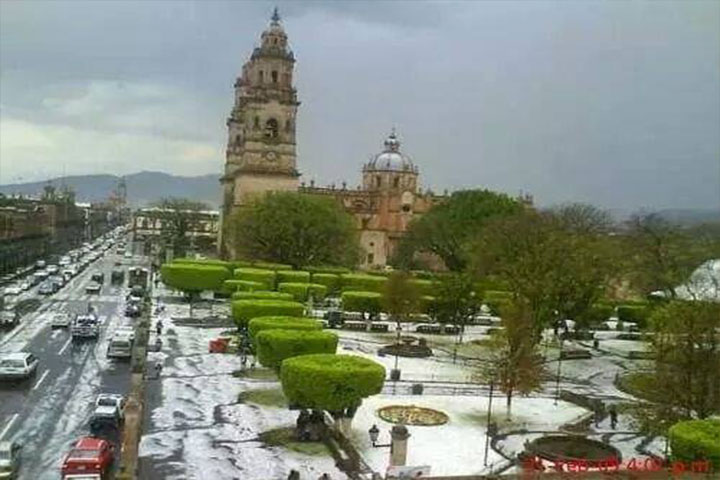 Una fuerte granizada cayó la tarde de este miércoles en esta capital michoacana, lo cual dejó b...