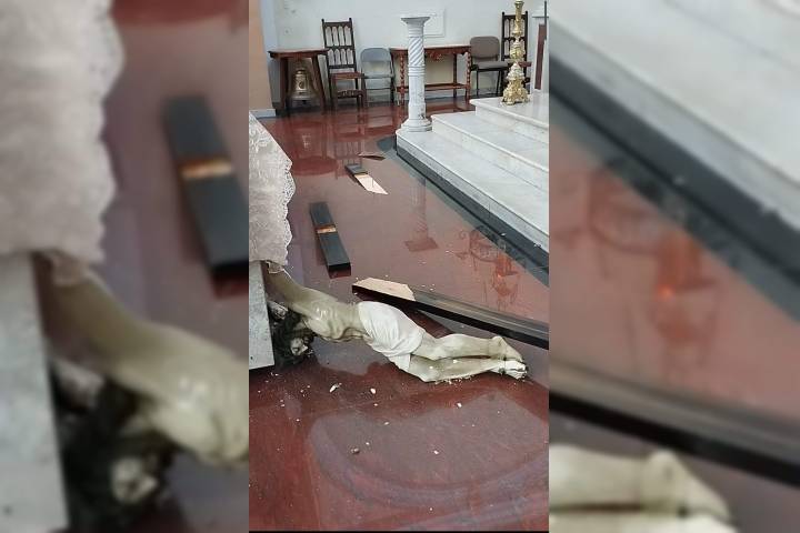 Enfurecido sujeto irrumpe en templo, destruye imágenes y tira cuadros religiosos