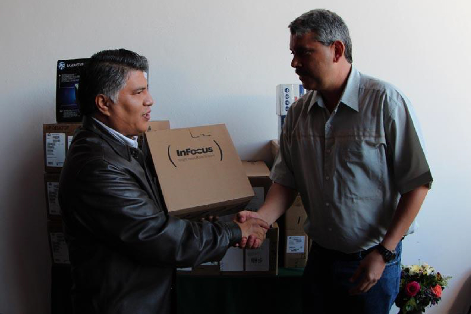 El secretario de Educación en el estado, Jesús Sierra Arias, entregó simbólicamente 600 computad...