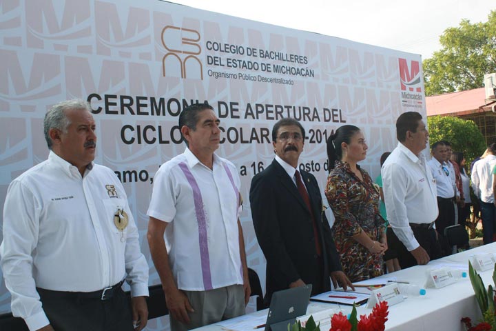 Al Inaugurar el ciclo escolar 2013-2014 del Colegio de Bachilleres del Estado de Michoacán (COBAEM...