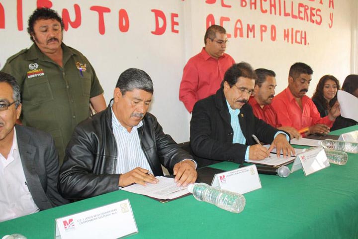 Con la firma del Convenio entre el Colegio de Bachilleres del Estado de Michoacán, y la Universid...