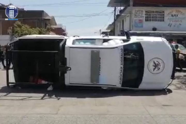 Un choque entre un taxi de la Organización Monarca y una patrulla de la Guardia Nacional (GN) dej...