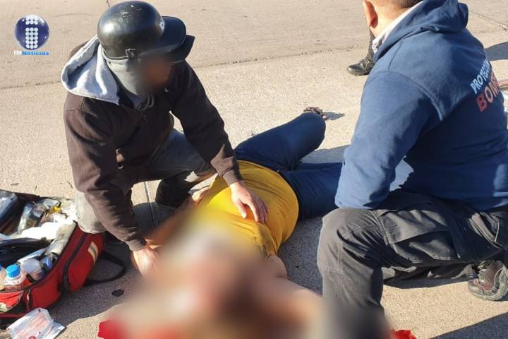 Cinco integrantes de una familia sufrieron un aparatoso accidente al caer de su motocicleta, luego d...