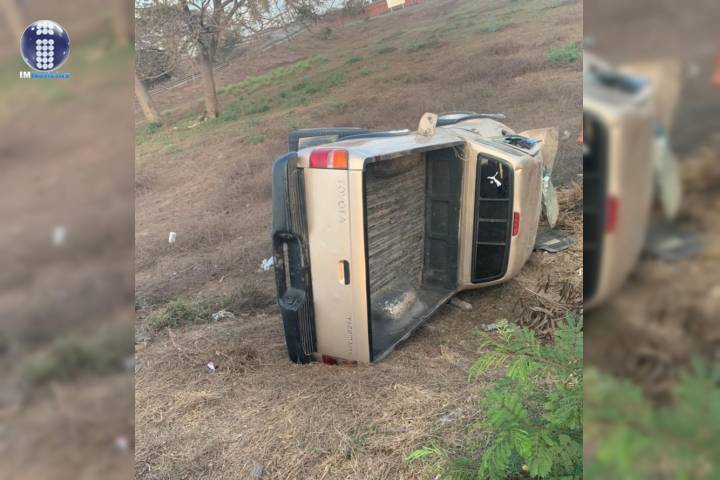 Una camioneta sufrió una aparatosa volcadura, hecho que tuvo como saldo nueve personas lesionadas, ...