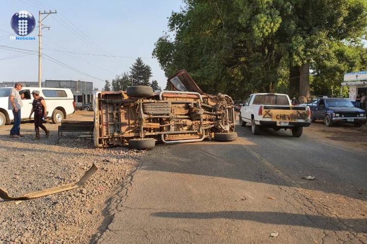 Una camioneta chocó contra una patrulla y terminó volcada sobre la carretera Tacámbaro-Pátzcuaro...