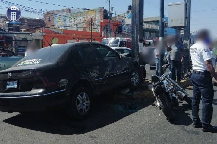 Un auto y una motocicleta participación en un aparatoso choque sobre la avenida Madero Poniente d...