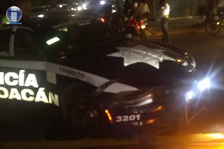 Un auto particular y una patrulla de la PolicÃa Michoacán de Tránsito y Movilidad participaron ...