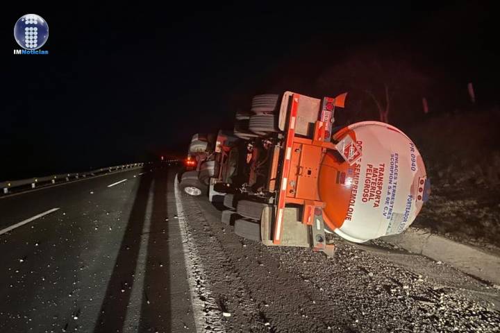 Uno de los dos remolques de un tráiler terminó volcado tras salirse de control sobre el kilómet...
