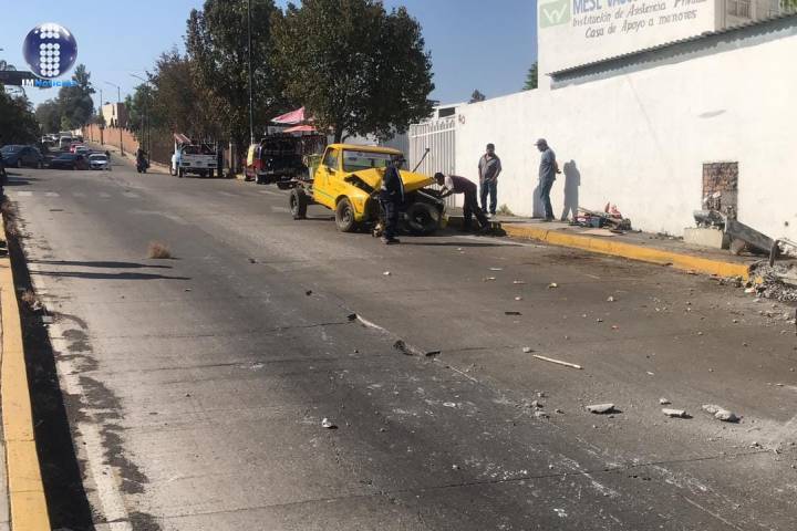 Camioneta recolectora de basura se queda sin frenos y choca contra poste de la CFE