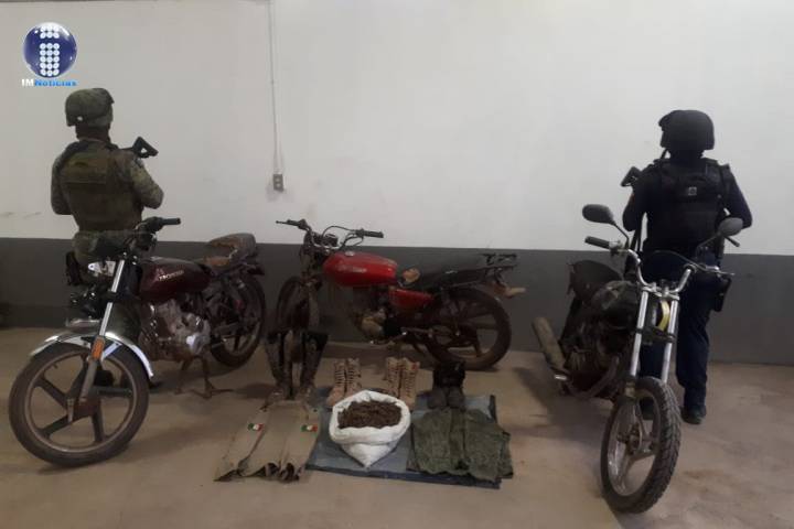 Aseguran SSP y Sedena dos kilos de marihuana y tres motocicletas