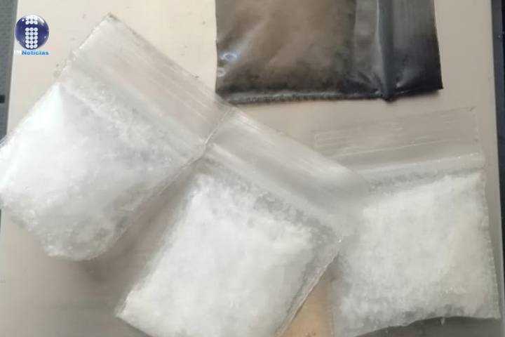 Detiene SSP a dos en posesión de sustancia al parecer metanfetamina, en Zitácuaro
