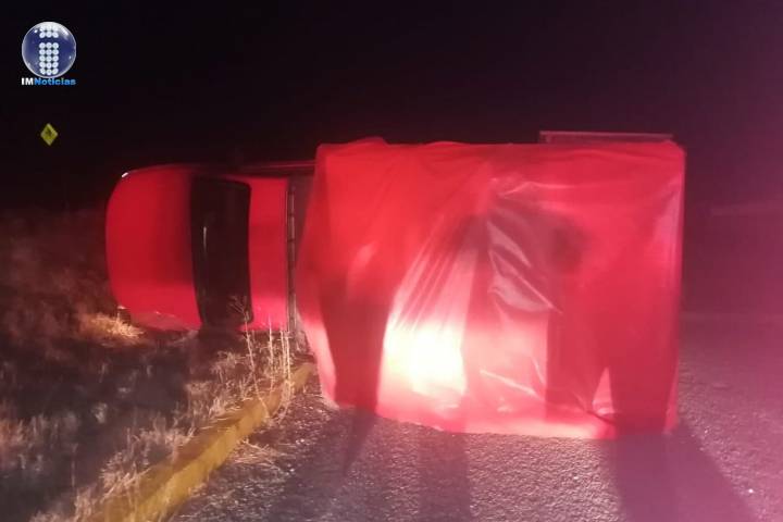 Una camioneta volcó sobre el kilómetro 19 de la carretera Morelia-Pátzcuaro, percance que por f...
