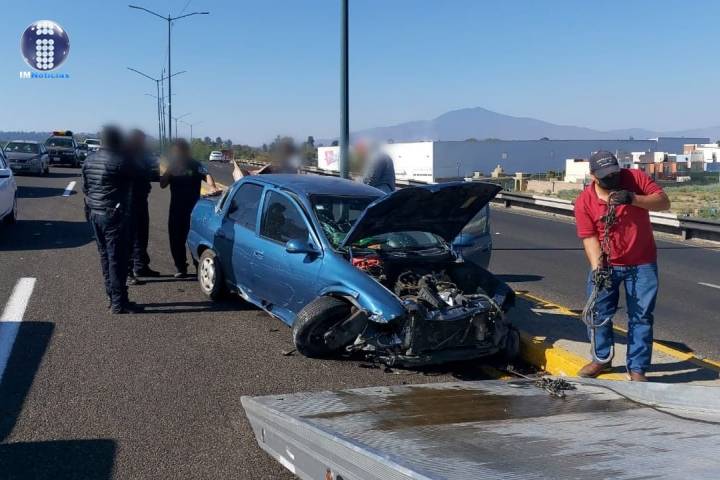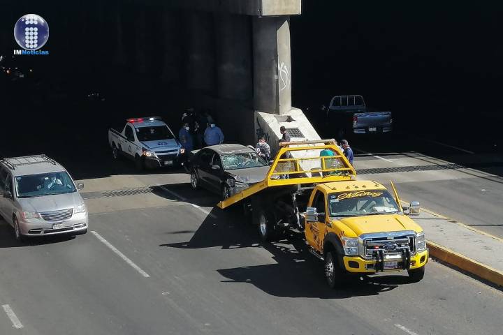 Un automóvil compacto chocó contra un camellón que divide los carriles del puente vehicular de la...