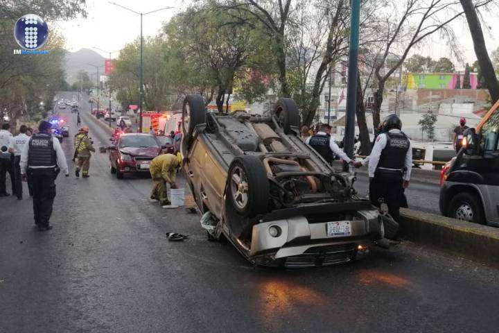 Dos heridos en choque volcadura en la avenida Madero Poniente