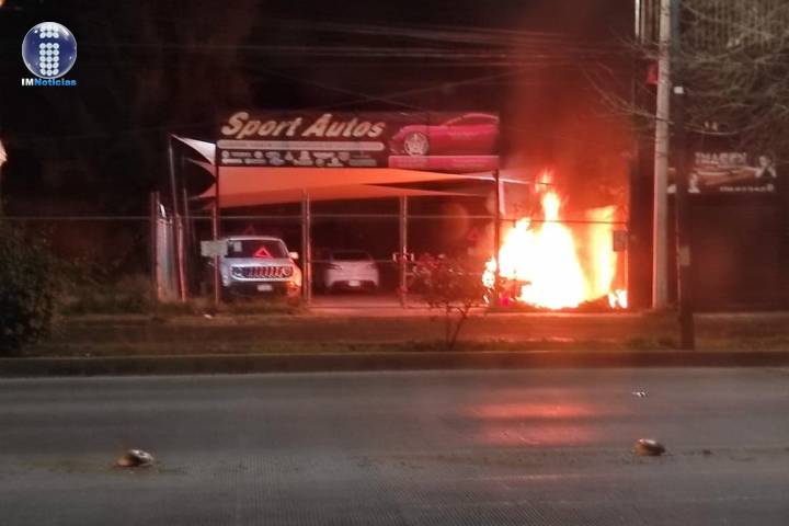 Arde vehículo en negocio de compra venta de autos en Morelia