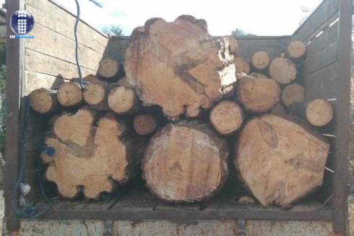 Asegura SSP camioneta cargada con rollos de madera, presuntamente ilegal