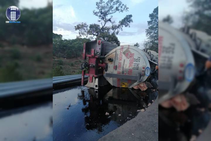 Una pipa que trasladaba combustóleo volcó en la autopista "Siglo XXI" y debido al accidente el con...