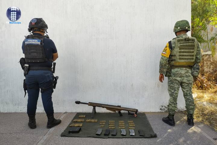 Aseguran SSP y Sedena un arma de fuego cargadores y cartuchos, en Aguililla