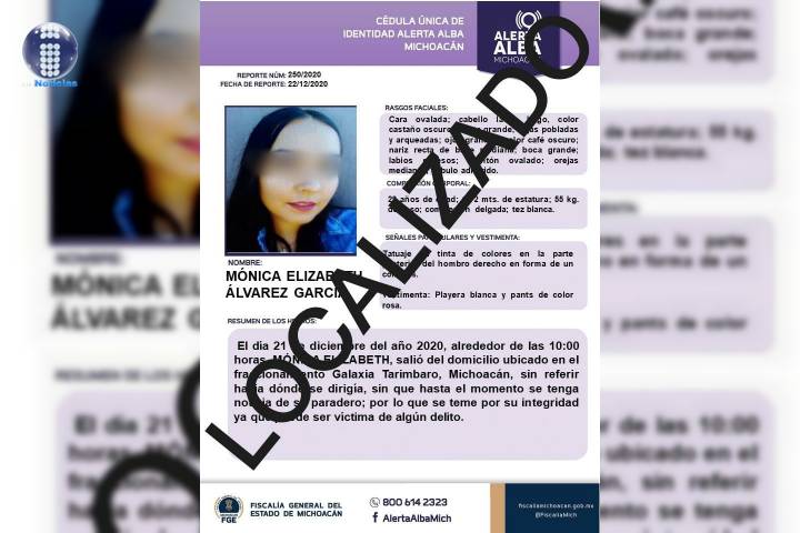 La Fiscalía General del Estado de Michoacán (FGE), desactivó el mecanismo de Alerta Alba tras l...