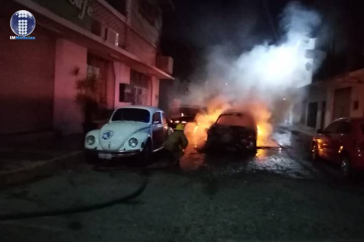 Choque termina en incendio de automotores en Apatzingán