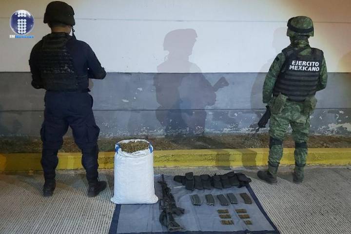 Aseguran SSP y Sedena un arma, 55 cartuchos útiles y 5.4 kilos de marihuana, en San Lucas