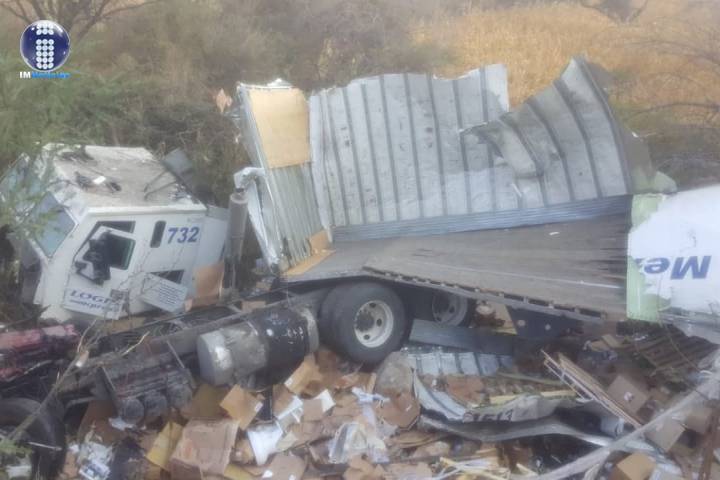 Un tráiler que transportaba paquetería salió de la superficie de rodamiento y terminó volcado ...
