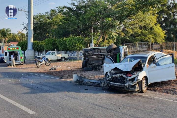 Camioneta vuelca tras ser chocada por auto en el Libramiento Norte de Zamora