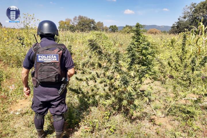Destruyen SSP y Sedena plantío de marihuana, en Tangamandapio