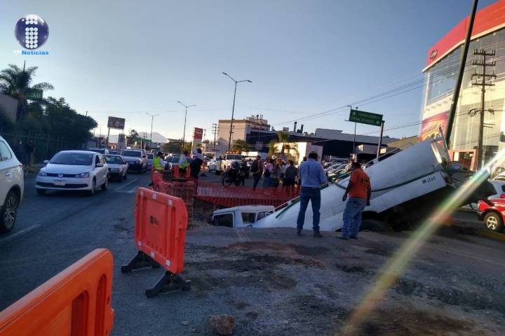 Un pipa de agua cayó accidentalmente a una excavación de las obras de lo que será el distribuid...