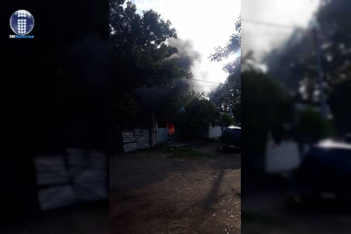 Una humilde vivienda construida de madera y láminas se incendió durante este lunes por causas de...