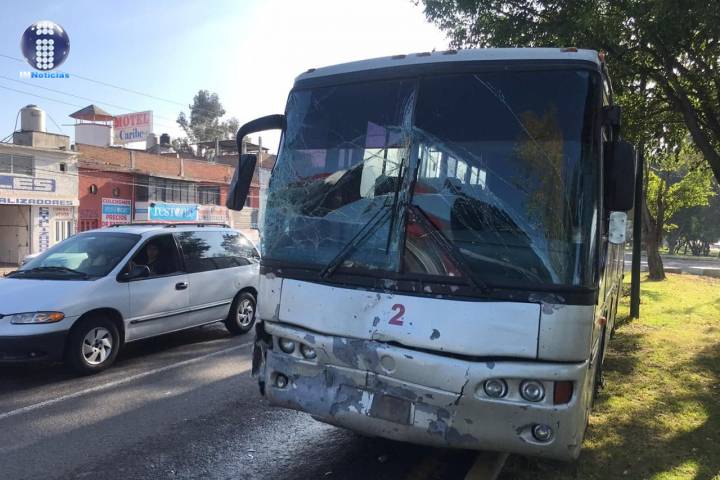 Dos autobuses de pasajeros chocaron por alcance en el Libramiento República de esta ciudad de Mor...