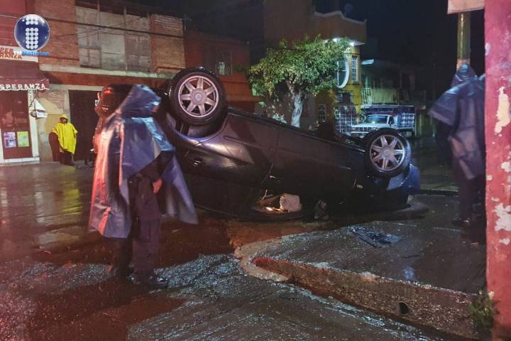 Vuelcan su auto en la Avenida Juárez de Zamora