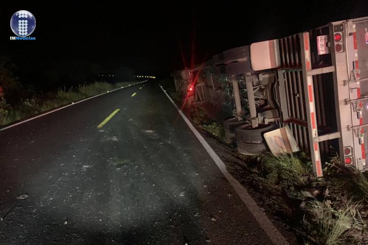 Un tracto camión se salió del camino en la carretera Uruapan-Lázaro Cárdenas a la altura del m...