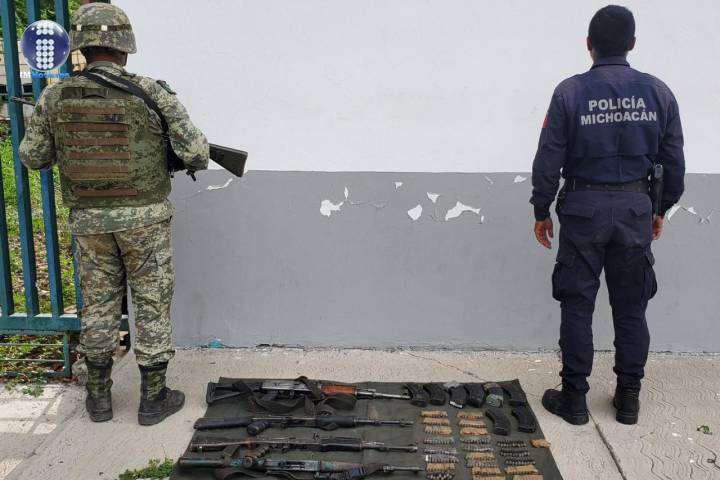 Aseguran SSP y Sedena cuatro fusiles y 256 cartuchos, en Aguililla