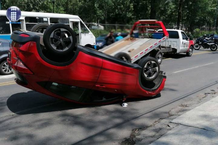 Un automóvil volcó después de protagonizar un choque contra otro carro, lo cual sucedió en la Av...