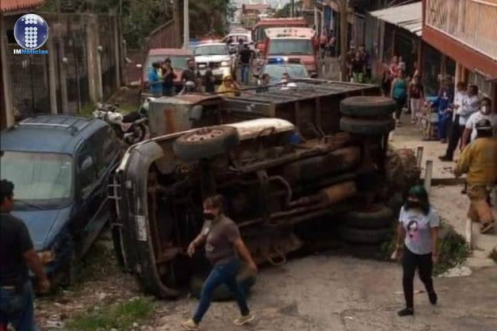 Un camión de basura se volcó en el Barrio de San Pedro lo cual causó daños materiales y revuel...