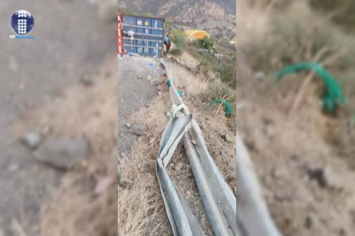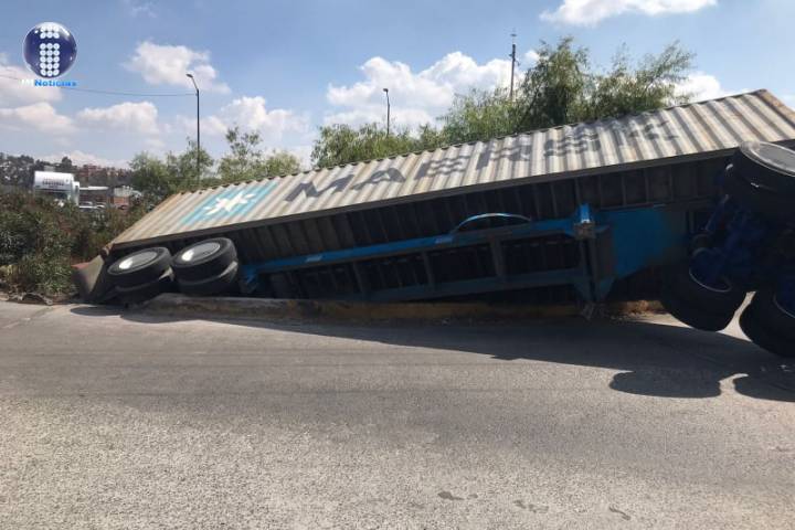 Uno de los dos remolques de un tráiler terminó volcado cuando dicha unidad circulaba sobre una d...