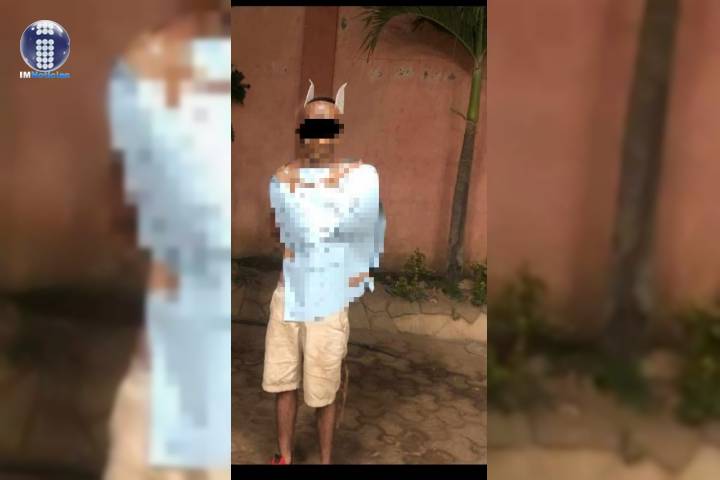 Amarran a hombre y lo disfrazan de ratón en avenida principal de Apatzingán
