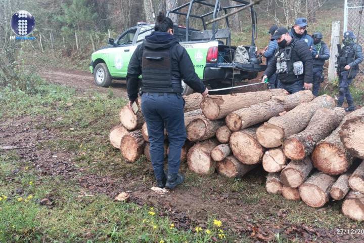 División Ambiental asegura 47 rollos de madera ilegal, en Morelia