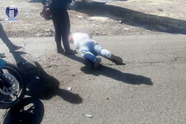 Un motociclista resultó con diversos golpes y lesiones al impactar su unidad contra un camión de p...