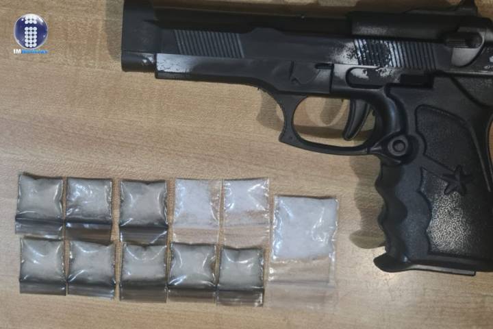En Tangancícuaro, SSP asegura a dos en posesión de un arma de fuego y droga