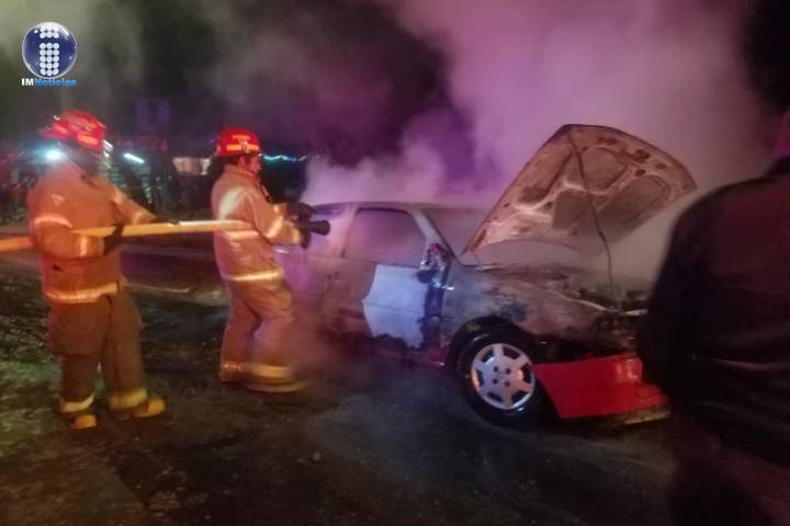Un automóvil compacto se incendió en la vía pública de Zitácuaro, hecho por el que fueron solic...