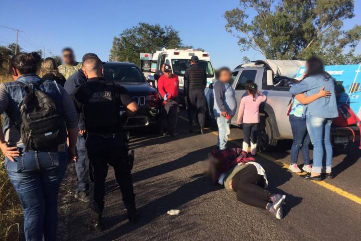 6 heridos tras aparatoso choque de camionetas en Chavinda