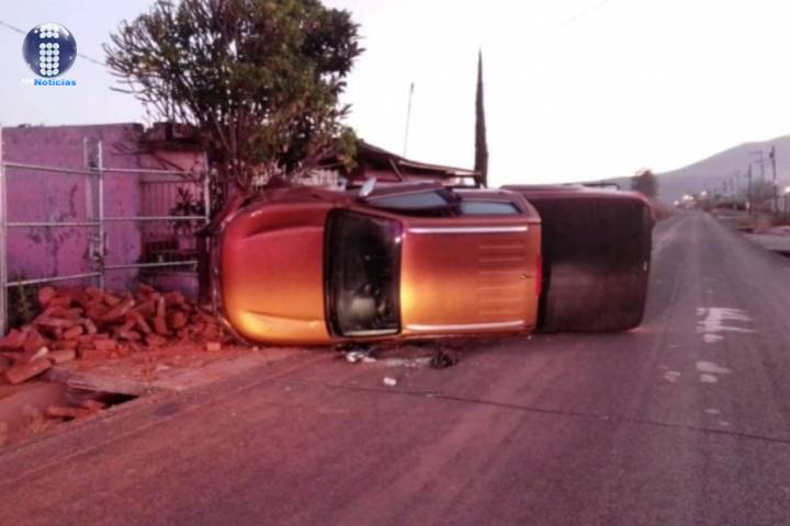 Una camioneta se impactó contra la barda de un domicilio y luego se volcó, pero cuando fueron au...