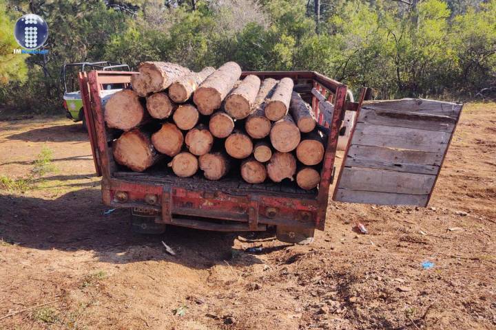 División Ambiental de la SSP asegura camioneta cargada con 23 rollos de madera ilícita