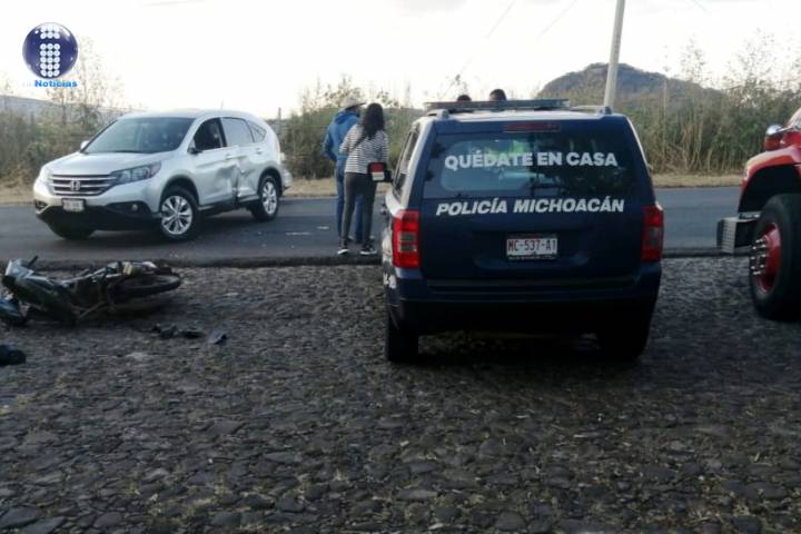 El aparatoso choque entre una motocicleta y una camioneta dejó como saldo un joven lesionado asà c...