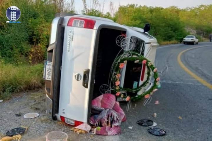Dos automotores se impactaron el municipio de Aquila, donde uno de ellos terminó volcado, donde n...